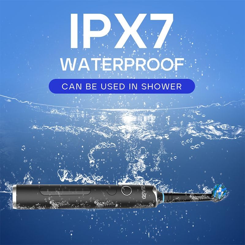 Electric Toothbrush for Adults with 3 Brush Heads, 5 Modes Rechargeable Power Toothbrush, 2 Min Smart Timer and IPX7 Waterproof (Black)