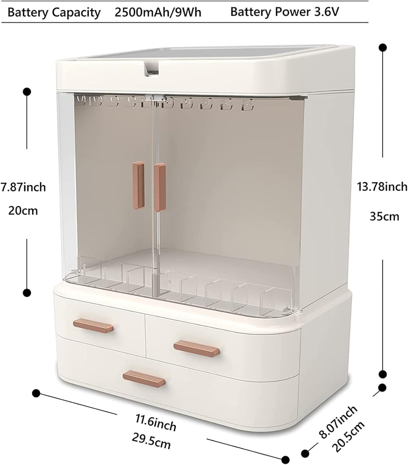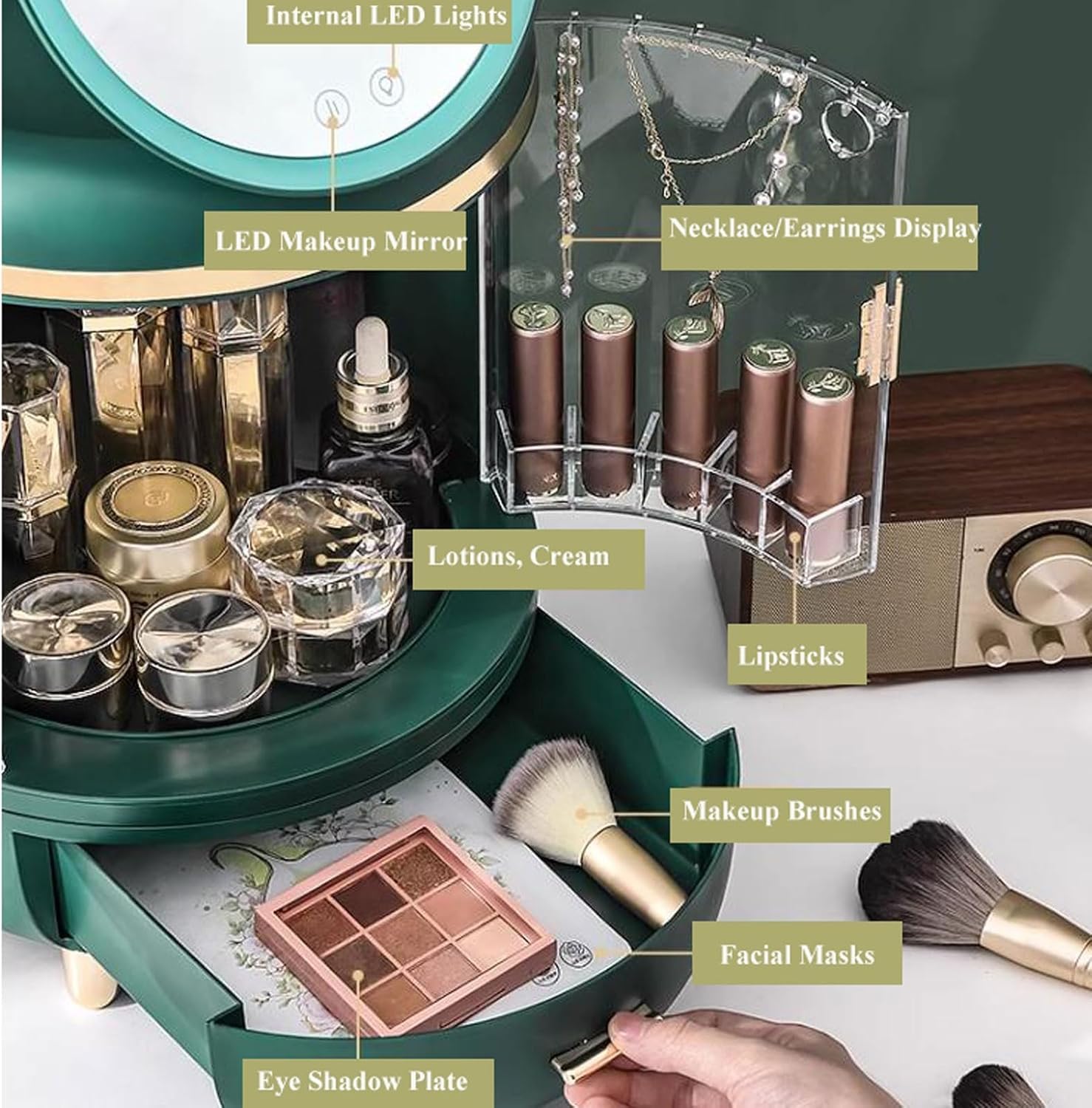 - The top compartment are ideal to store your lipsticks,eye shadow,brushes, jewelry. The skincare organizers are made of high-quality environmentally friendly ABS material, ensuring durability.
