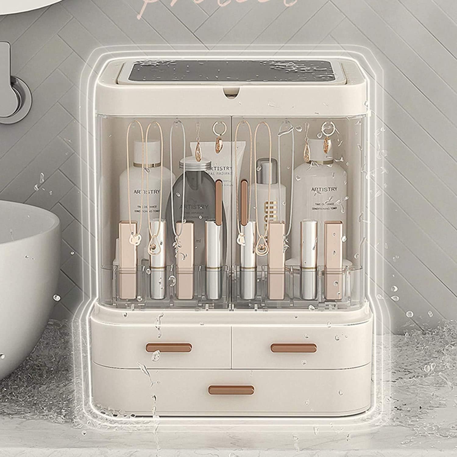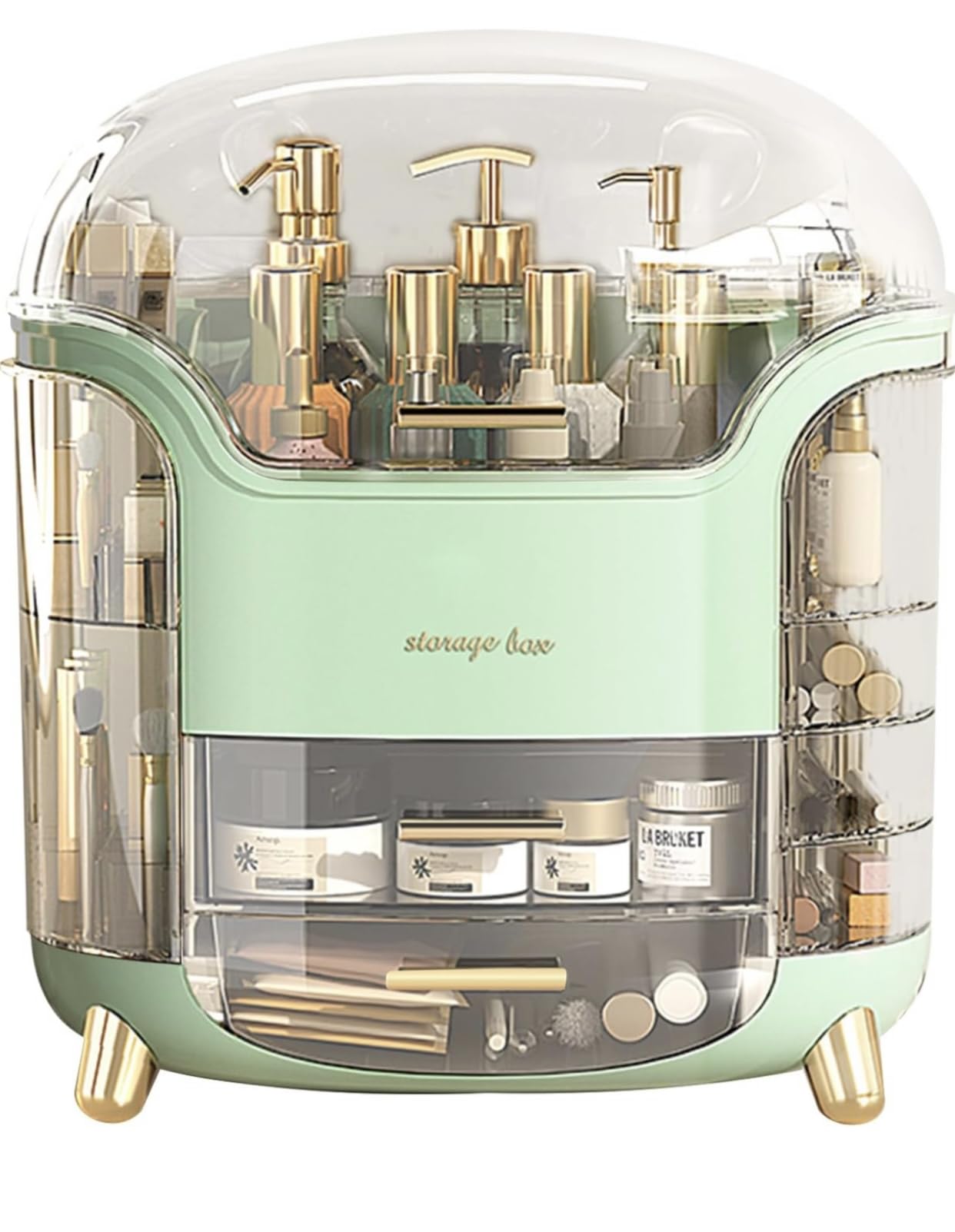 - Clear Compartments: With its transparent design, you can quickly identify and access your makeup, lotions, and other beauty products stored inside.