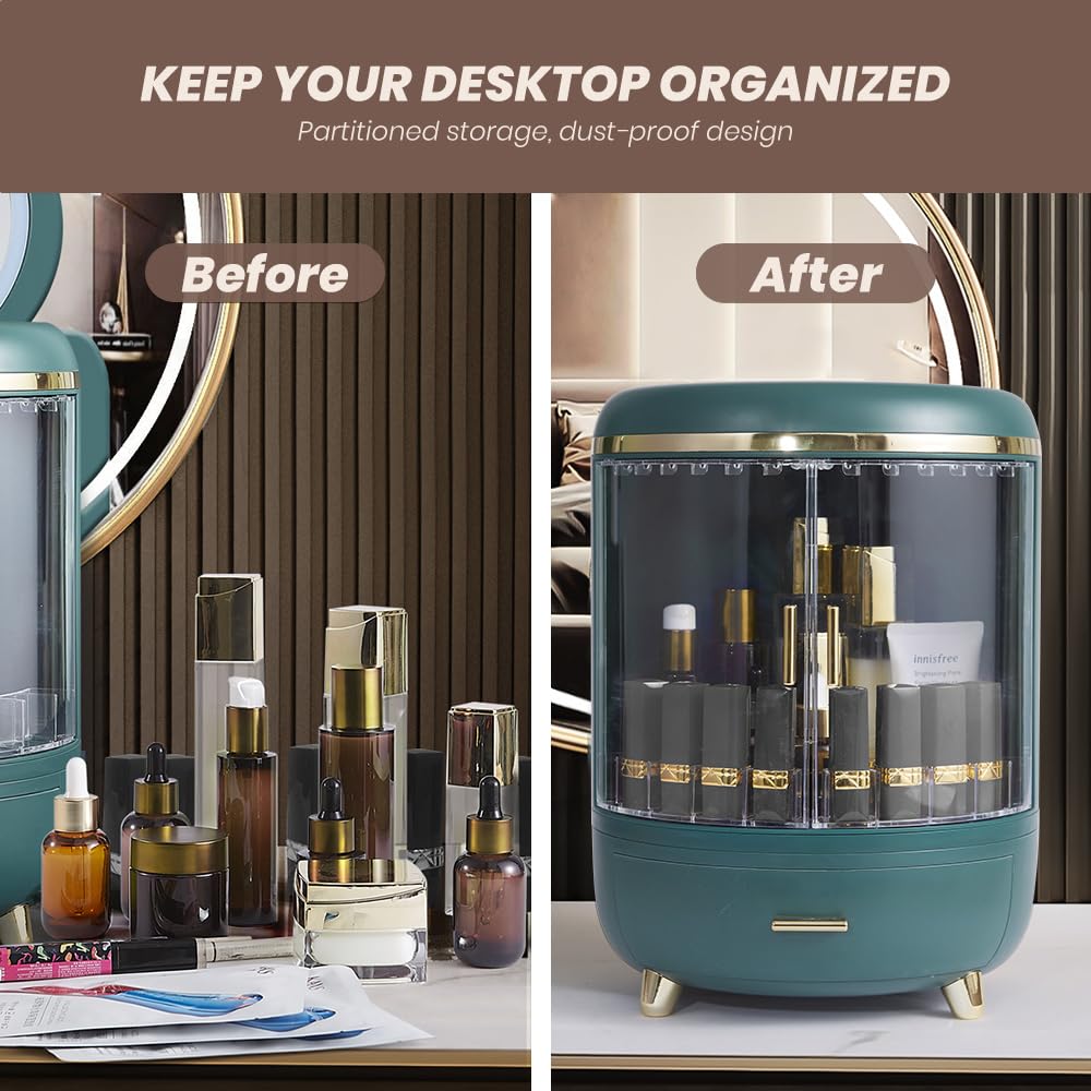- The desk organizer has large opening lid design ensures that your cosmetics stay protected from dust and water, with storage and organization that works as drawer organizer and toiletry bag make up.