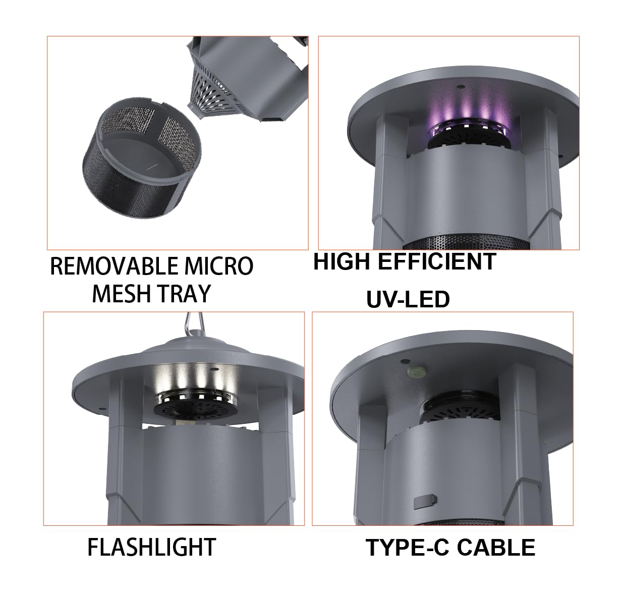 - Dual Spectrum Attraction: The mosquito killer uses a combination of two peak wavelength LED beads at 365nm and 395nm. Therefore, you will see two different colors of our LED beads. The mixed spectrum can attract more types of bugs..