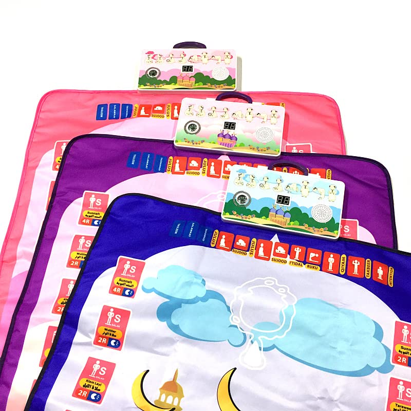 Qlonn Kids Muslim Prayer Rug - Electronic Islamic Prayer Carpet Mat, Teaching Talking Music Mat with Worship Step Guide for Kids (Pink)