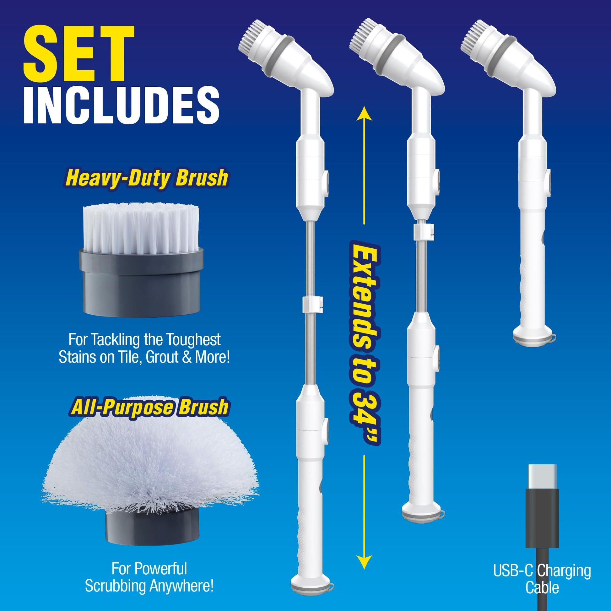 - Water-Resistant Durability: Built to withstand wet environments, the spinning scrub brush's water-resistant design helps provide reliable performance even in damp conditions, making it a durable addition to tackle those stubborn messes